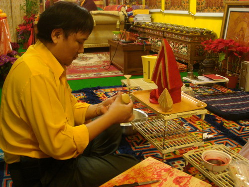 上圖 :上師跟前授皈依戒:承認終身皈依三寶之頂禮三寶,奉持三皈戒律之居士